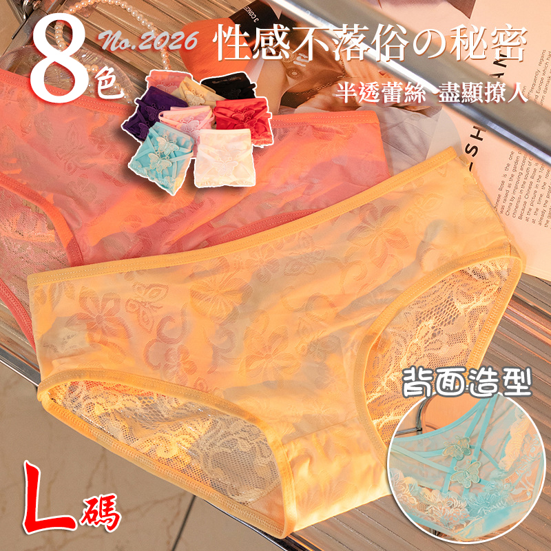 性感屁股蛋蕾絲內褲【L】性感半透網紗內褲 後背鏤空細帶蝴蝶三角褲