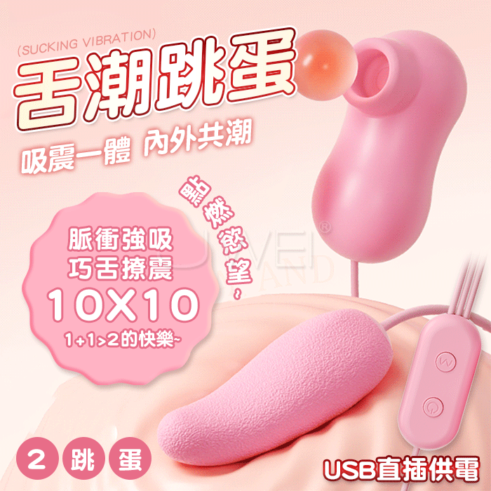 舌潮.10x10頻脈衝吮吸 巧舌撩震 內外共潮 USB直插情趣跳蛋【雙跳款】