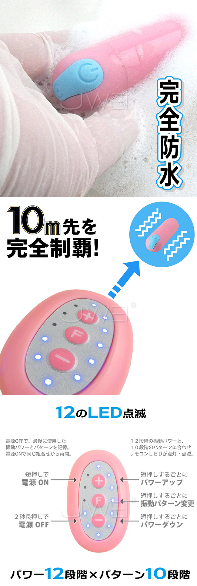 12段階の振動強弱調節が出来るだけでなく、