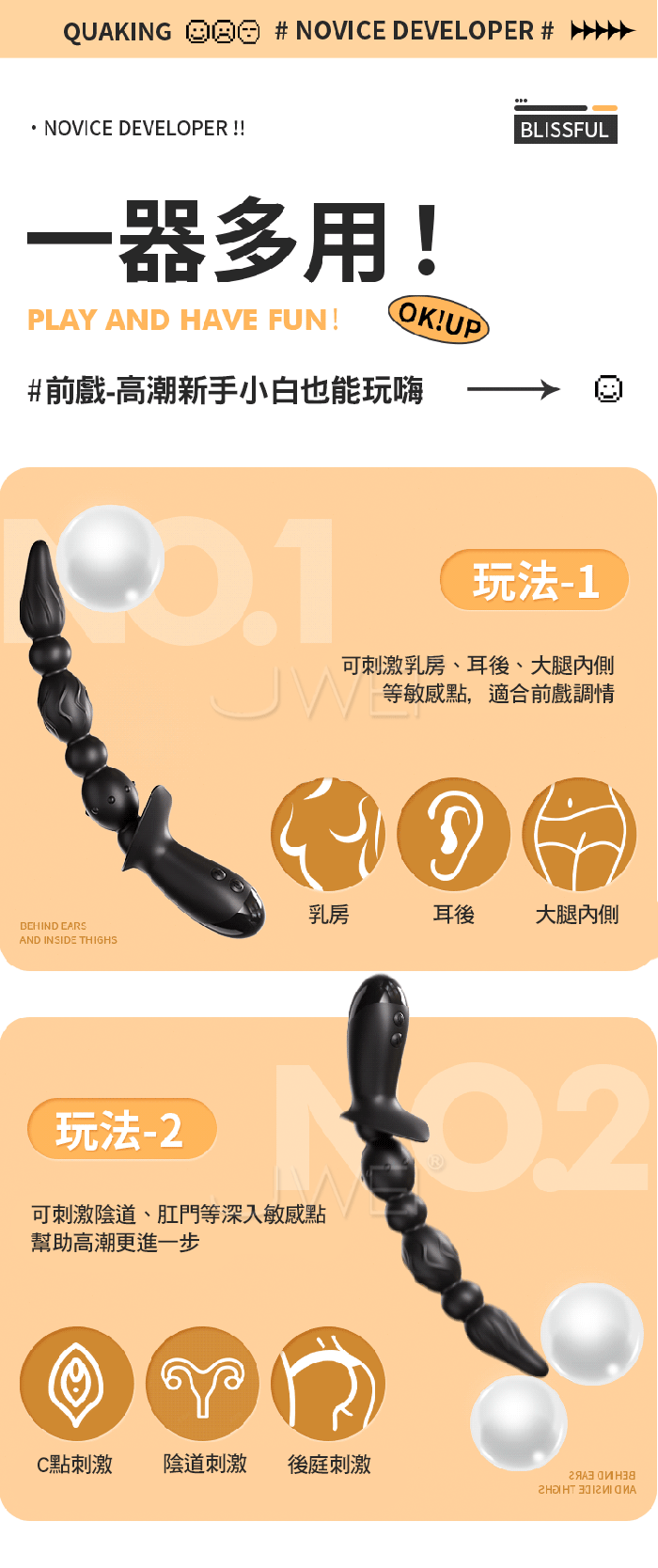極樂拉珠.10段三馬達高頻強震 點處爽潮任意彎曲激震後庭拉珠棒