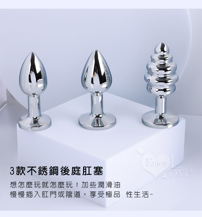 激性扮演狐狸精 ‧ 3款不銹鋼後庭肛塞+純白尾巴毛套裝組﹝可組裝拆卸﹞