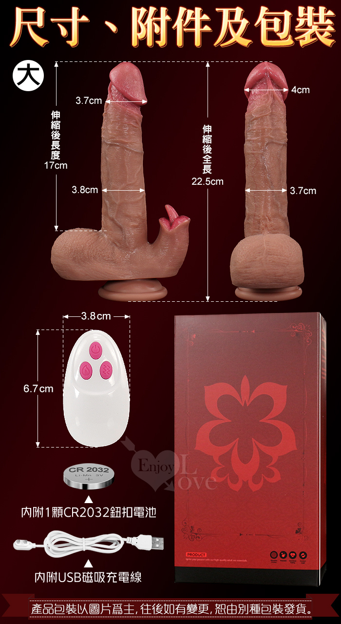 ►您現在的位置:首頁>樂翻天Ⅱ代.伸縮衝撞+舌戰撩震 無線遙控超仿真肉感描青筋血管老二棒-大﹝9頻雙調控+智能加溫+強力吸盤+磁吸充電﹞