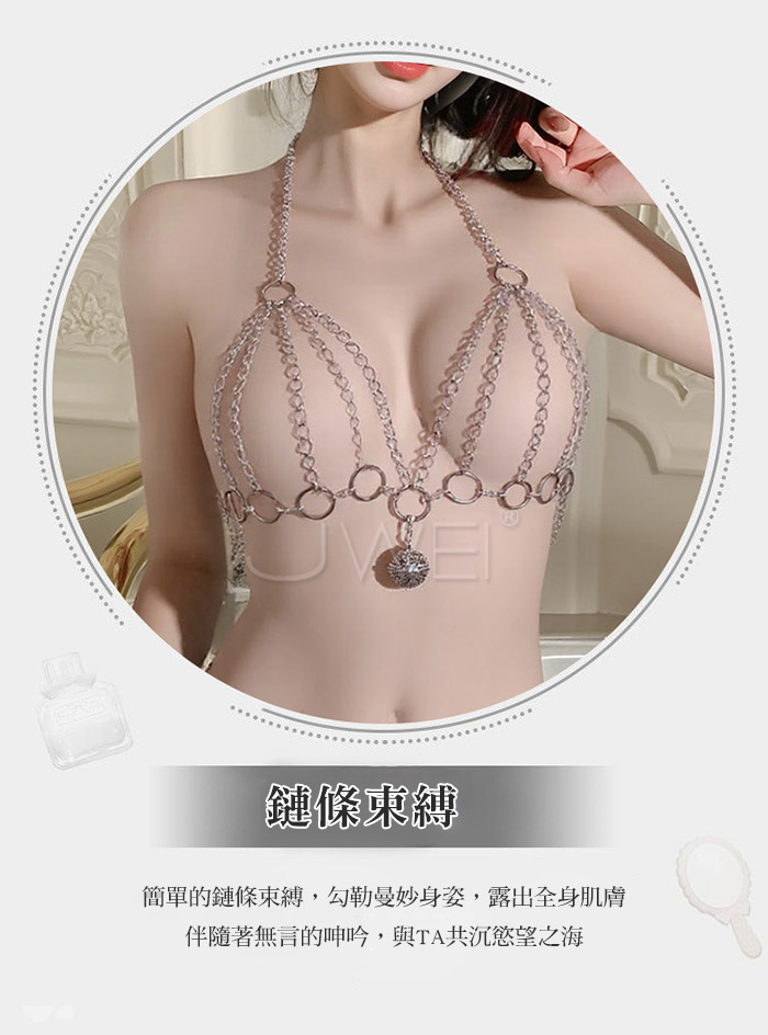 火辣熱鍊.性感三點分體式鎖胸束縛鈴襠金屬鏈衣