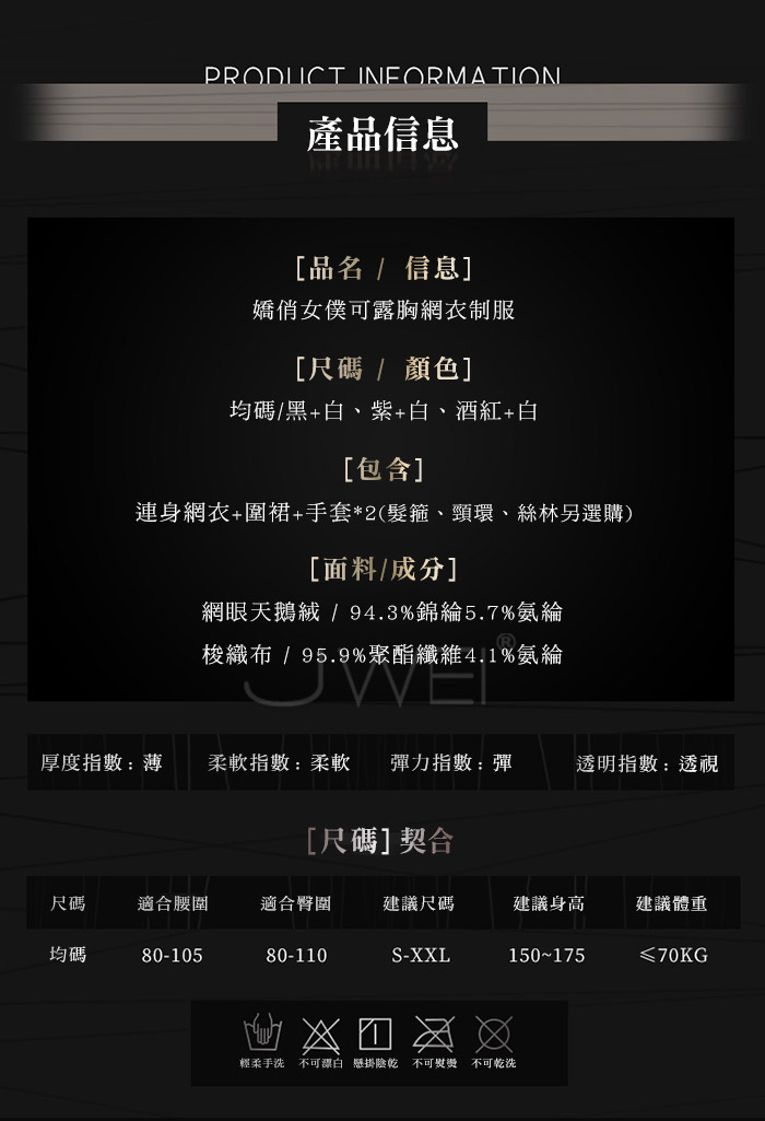 ►您現在的位置:首頁>嬌俏女僕.火辣條紋露胸可撕網衣女樸套裝-黑【連身網衣+圍裙+手套*2】