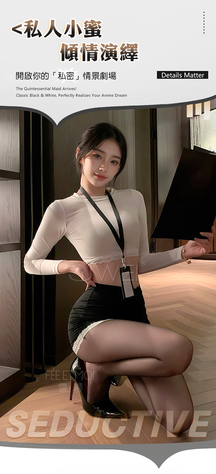 ►您現在的位置:首頁>職場佳麗.撩撥暗慾腰腹雙邊蕾絲秘書套裝【上衣+工牌+包臀裙】