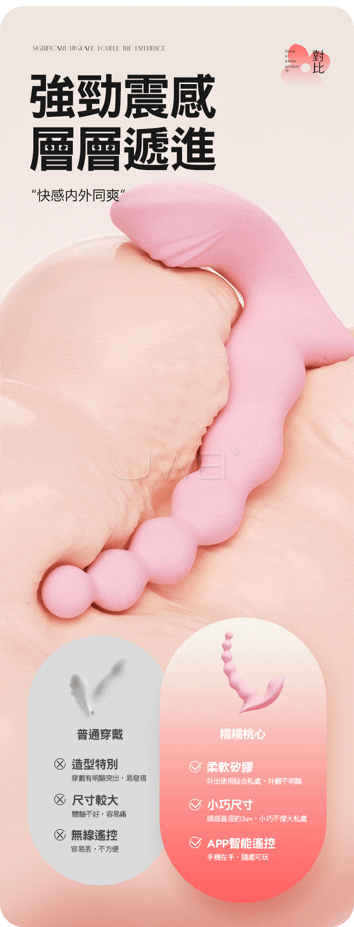 ►您現在的位置:首頁>謎姬 MizzZee.糯糯桃心.10頻穿透強震穿戴拉珠摩擦 新手爽玩APP異地遙控後庭按摩器
