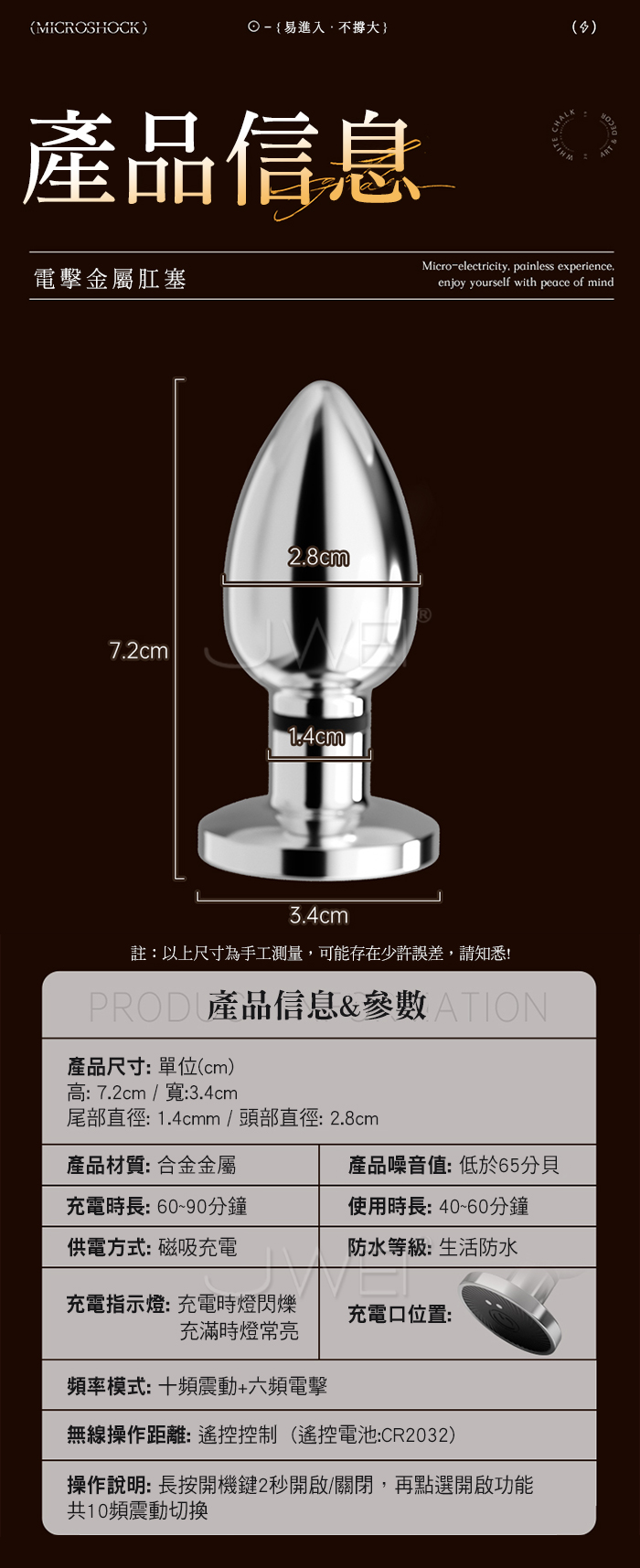 謎姬 MizzZee.電擊肛塞.6頻微電擊刺激+10頻強震金屬遙控後庭調教肛塞