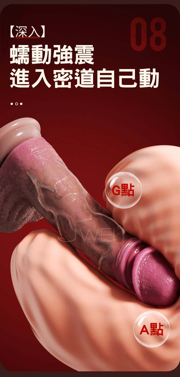 蠕動陽具.3頻蠕動+10頻強震 仿真龜頭筋絡紋理無線遙控加溫吸盤老二棒