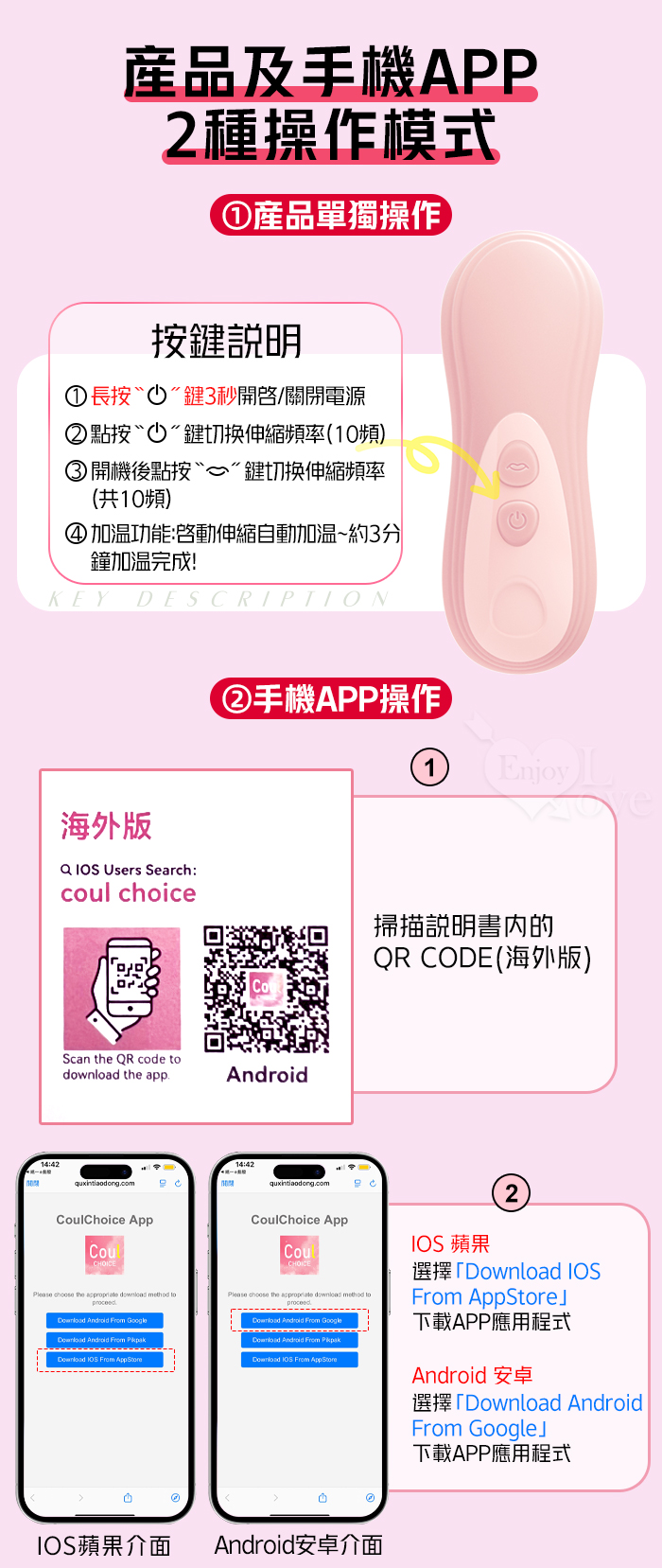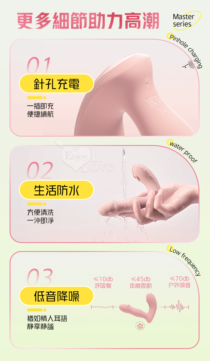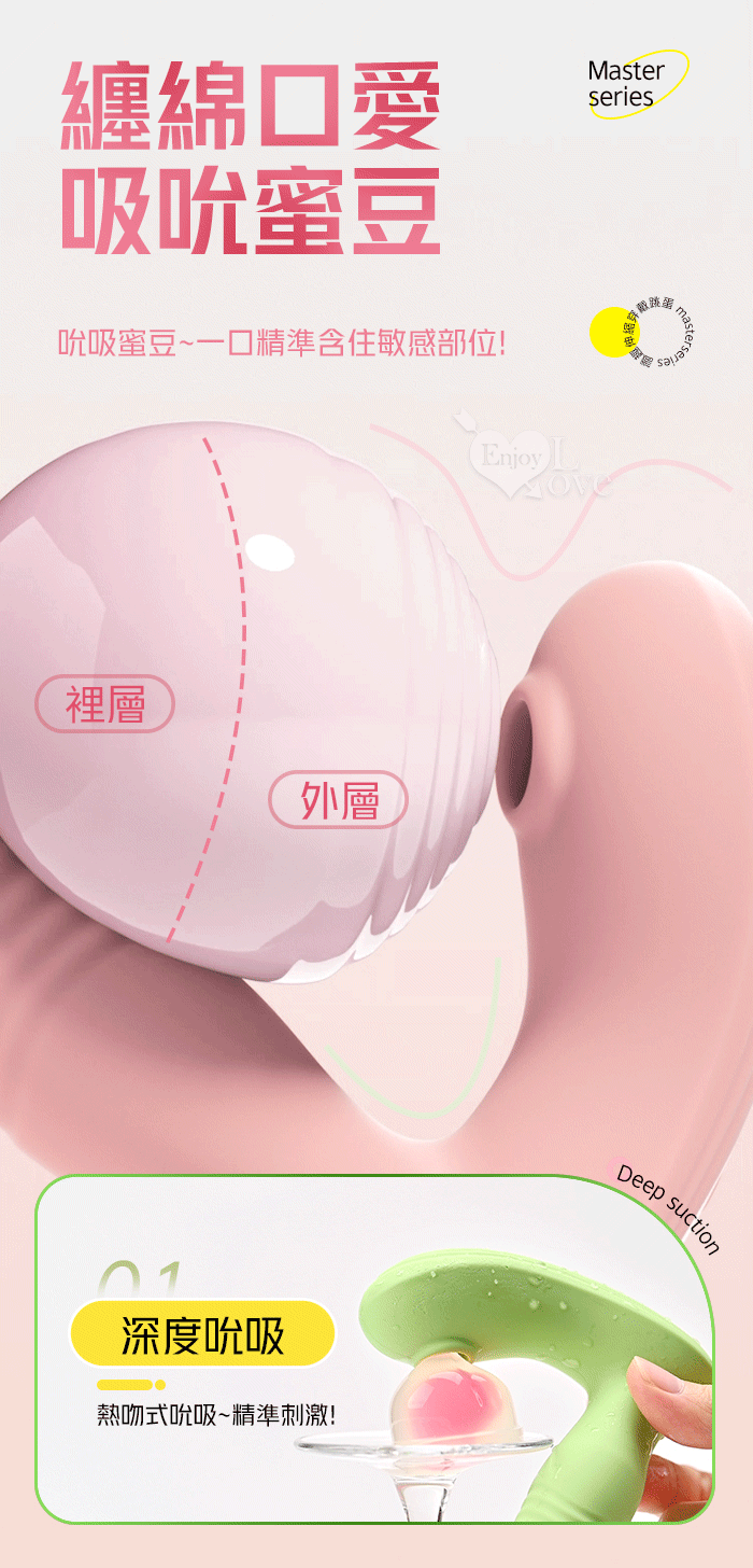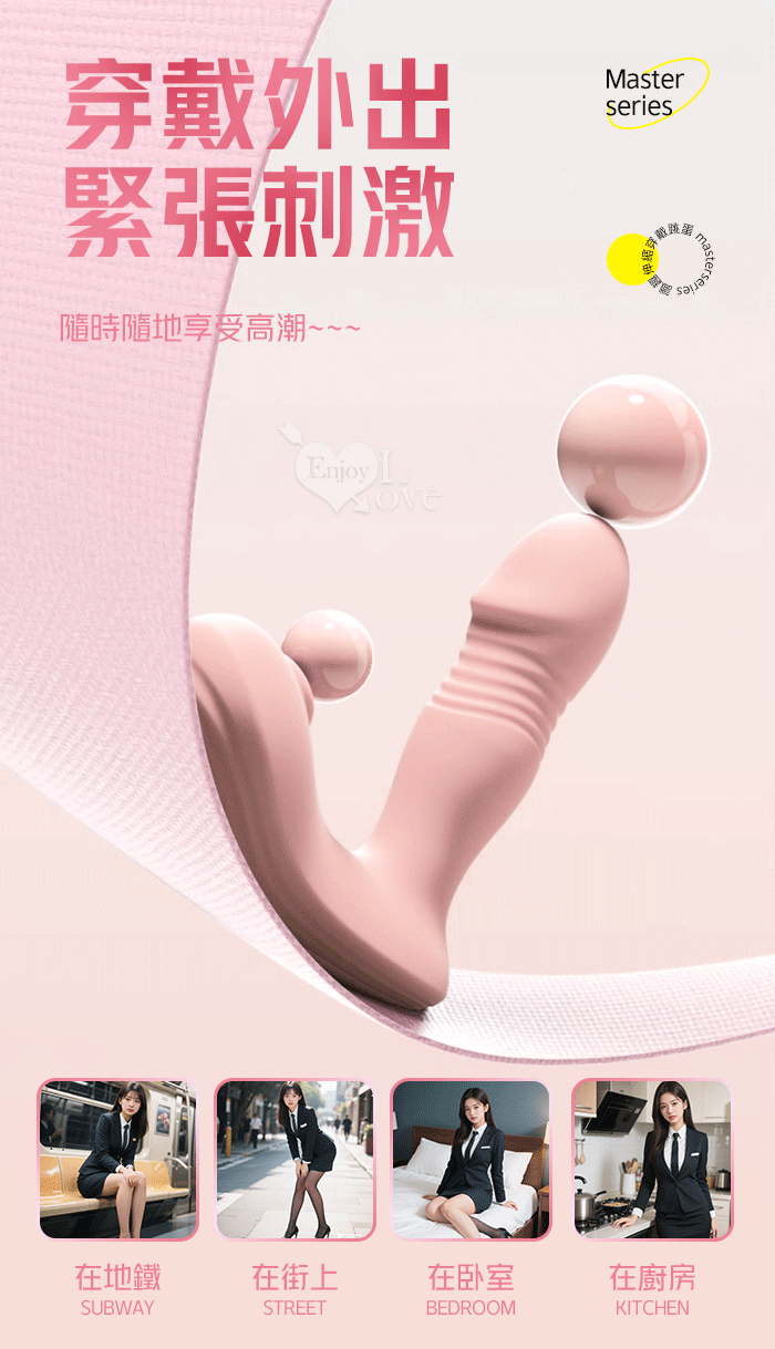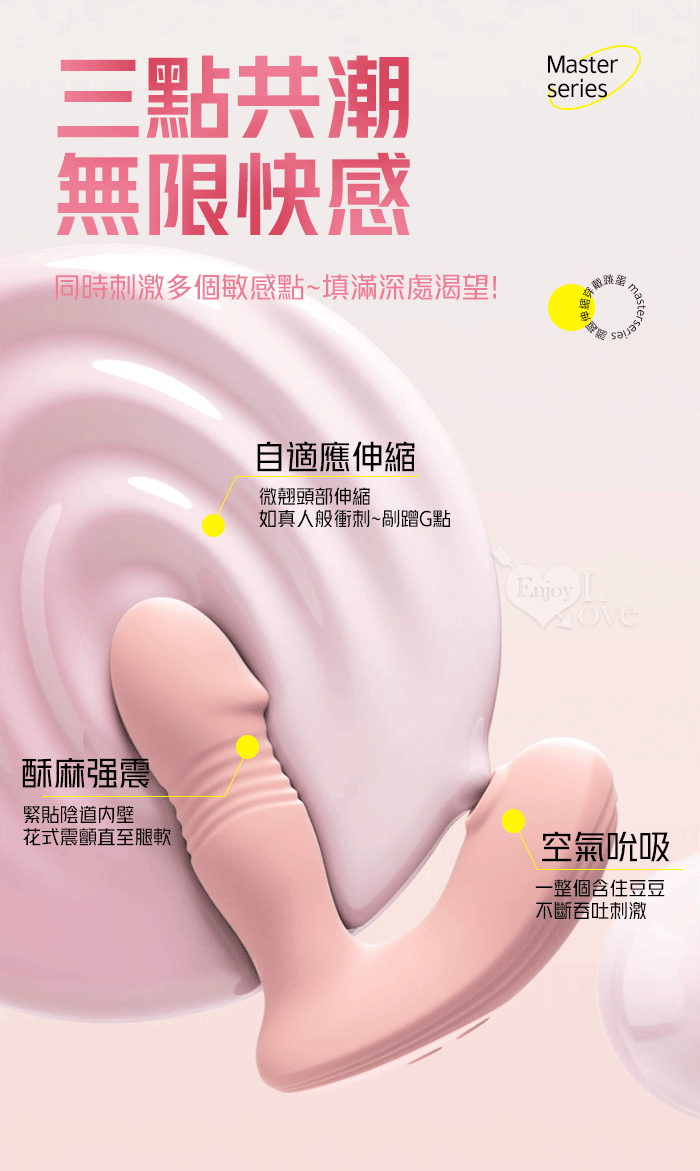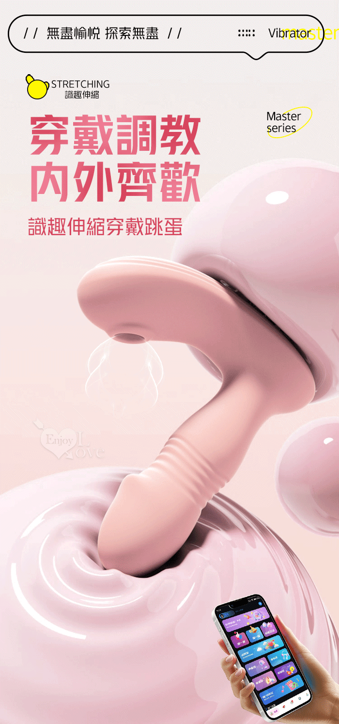 ROSELEX 勞樂斯 ‧ 識趣 10變頻伸縮+震動/吮吸內外齊歡智能加溫按摩器 - 可手機APP遙控﹝具兩種操控模式﹞粉色