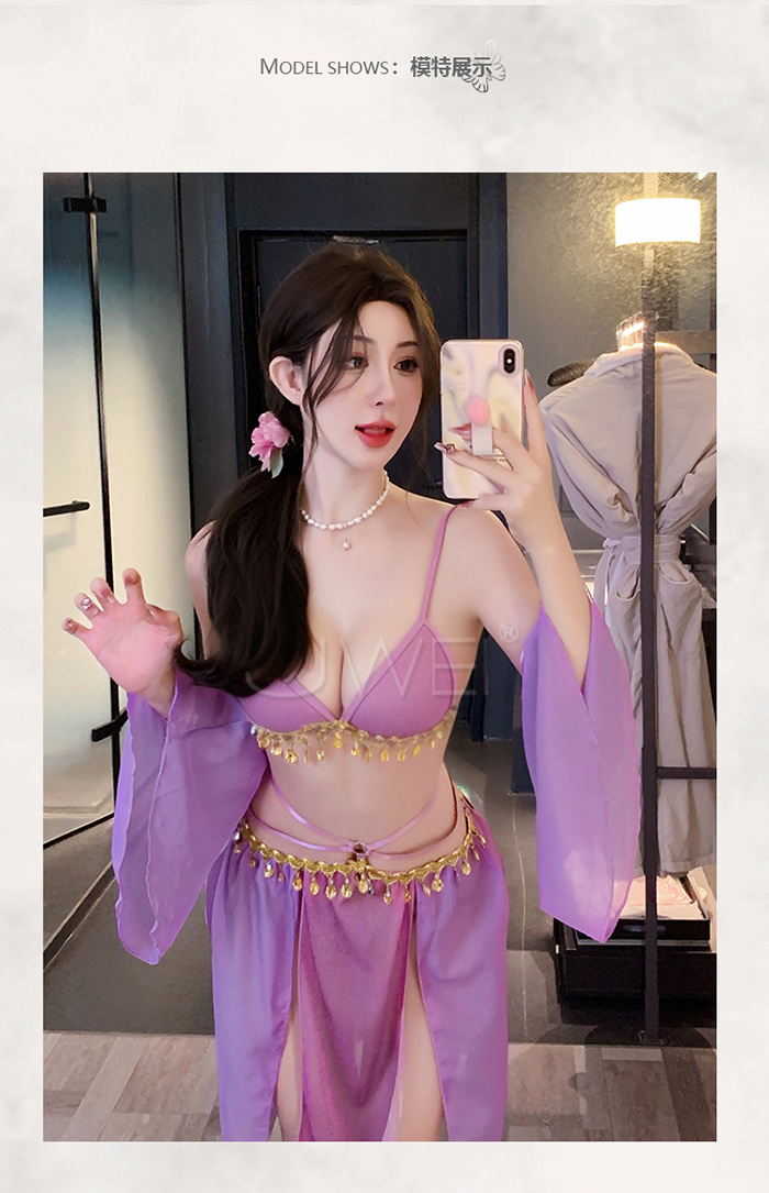 ►您現在的位置:首頁>情定西域.異域風情復古亮片拼接裙擺角色扮演服-紫色【胸罩+短裙+T褲+袖子*2】